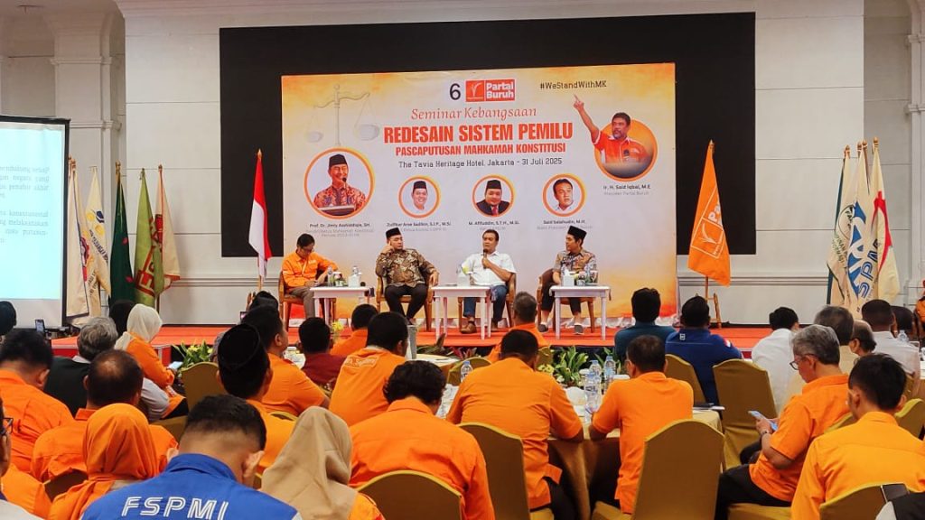 Jakarta, 31 Juli 2025 — Federasi Serikat Pekerja Farmasi dan Kesehatan (FARKES KSPI) turut ambil bagian dalam Seminar Kebangsaan bertajuk “Redesain Pemilu Pasca-Putusan Mahkamah Konstitusi” yang diselenggarakan oleh Partai Buruh di The Tavia Heritage Hotel, Jakarta Pusat.